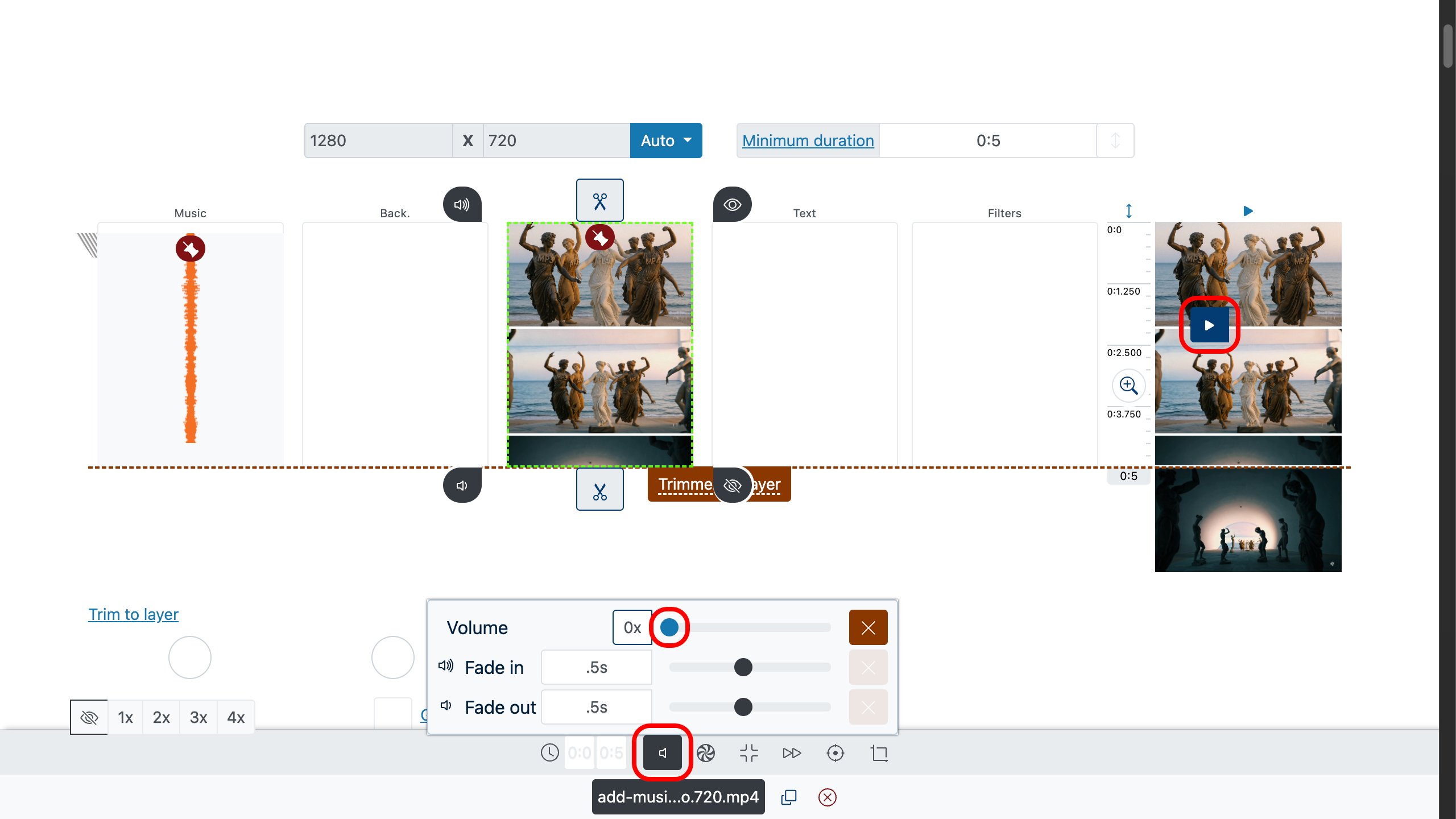 - Musik als Hintergrund: Reduzieren Sie die Lautstärke der Musikspur im unteren Einstellungsbereich.